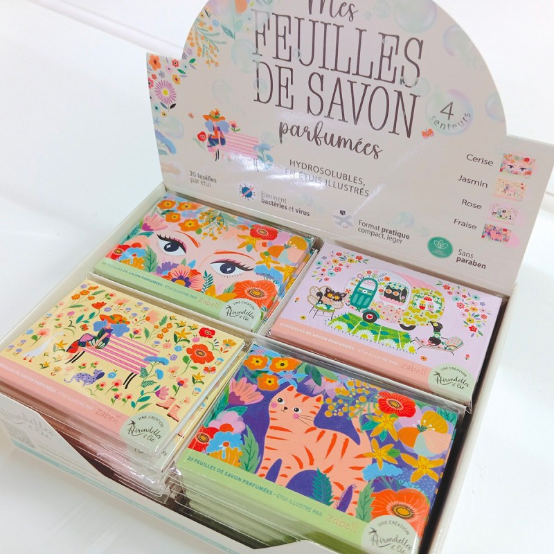 Étui contenant 20 feuilles de savon sans paraben